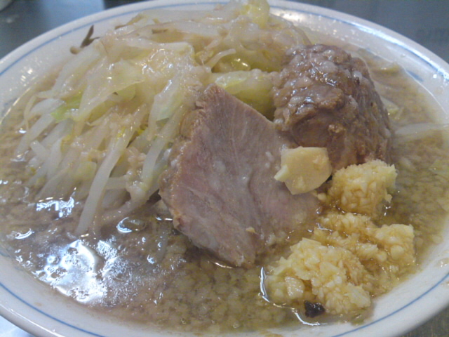 家から一番近い二郎系、らーめん大本郷店。いろいろ不満はあるものの、結局一番食べに行っている。醤油がちなスープはあっさりとしているので、刻みニンニクを溶かすとちょうどいい。軽さを補うためのアブラ・カラメ・ニンニク。これでもやや物足りない。もう少しなんとかならないものか。今回はアブラ・ニンニクダブルにしてみた。アブラ増しにすると明らかにアブラがす。今までのアブラ増しは何だったのだろう。