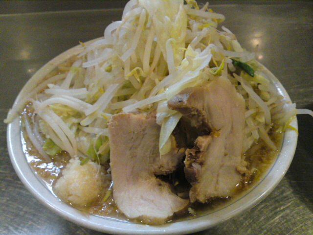 神保町に行く用事があったのでついでにラーメン二郎を見に行った。神田神保町店は相変わらずの人気。ざっと数えても40人以上並んでいる。これは予想していたことなので、ショックはない。今日は予定通り隣の用心棒に向かった。用心棒はラーメン二郎神田神保町店の隣にある二郎系の店。一番出したくない場所にあえて出店するとは、すごい店だ。今日は豚入りはやめておいて、普通の大。ラーメン二郎には大と小があるが、小でもかなり量があるのが普通。でも用心棒の小はほんとに少ない。豚入りは逆に、物凄い豚の塊がたくさん盛られている。たぶん僕にちょうどいいのは大の普通だろう。この店はどういう経緯で出来た店なのだろう。二郎系という分類だが、二郎の作り方を知ってる人がやっているようだ。どこかの支店と言われても分からないくらいそっくりだ。