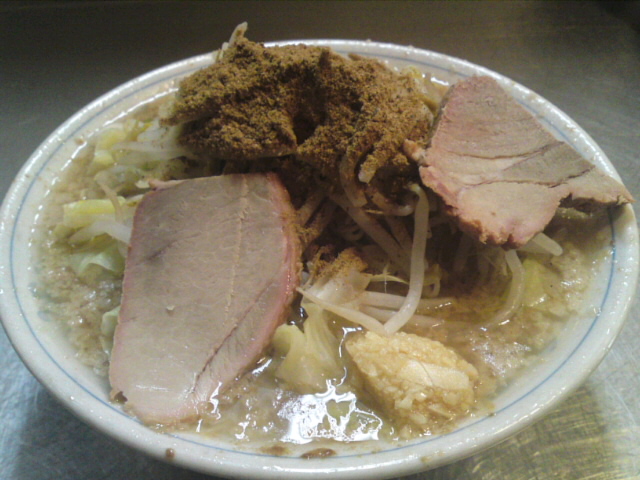 写真はニンニク・アブラの魚粉トッピング。魚粉は余計だったかもしれないが、ニンニク・アブラを基本にすれば、僕の好みにかなり近づくことが分かった。