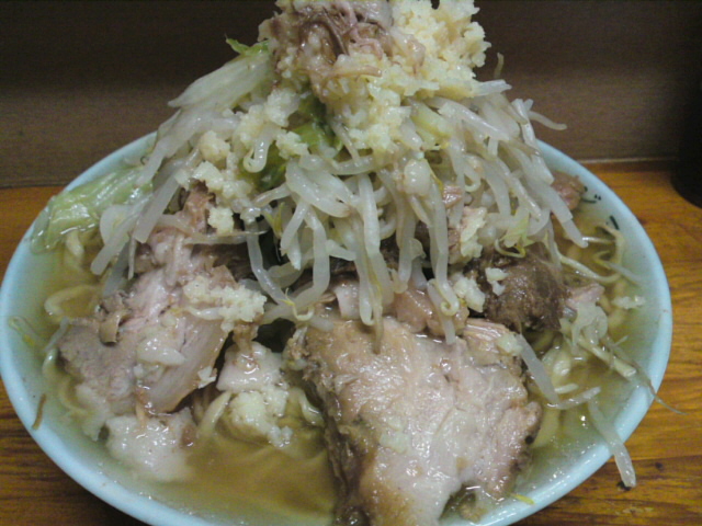 写真は、豚増しの、野菜、アブラ、ニンニク、ニンニクダレ。要町にはニンニクダレと生姜ダレがある。ニンニクダレには刻んでないニンニクが入っていて強烈。これもなかなかやめられない。
