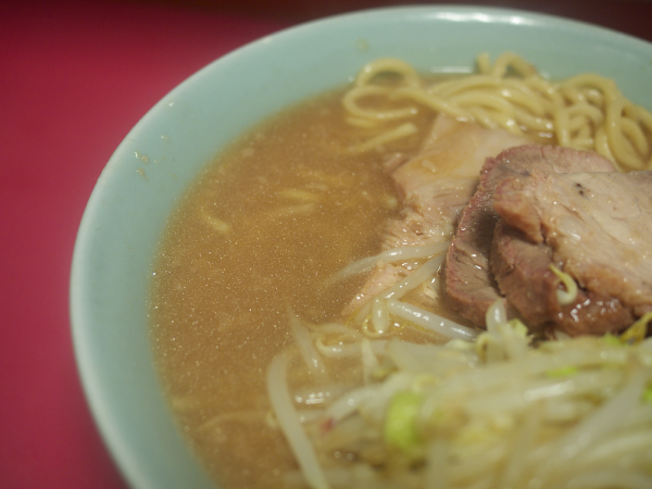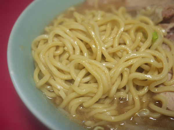 麺はいつもの歌舞伎町の麺。普通のラーメン二郎の麺と比べると粉っぽさがないものの、慣れればこれはこれでおいしく思えてしまう。