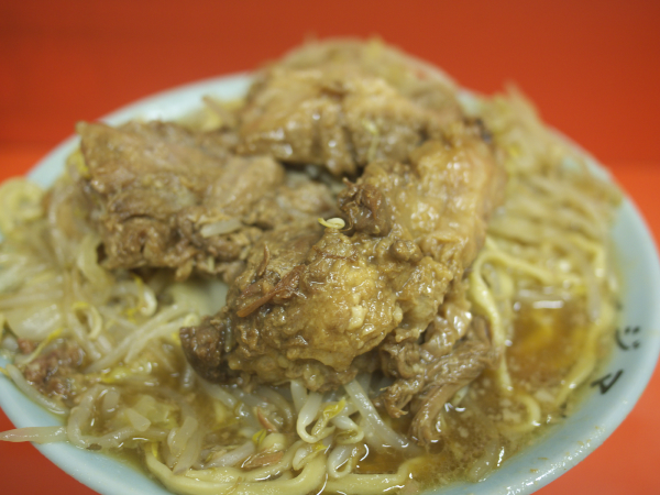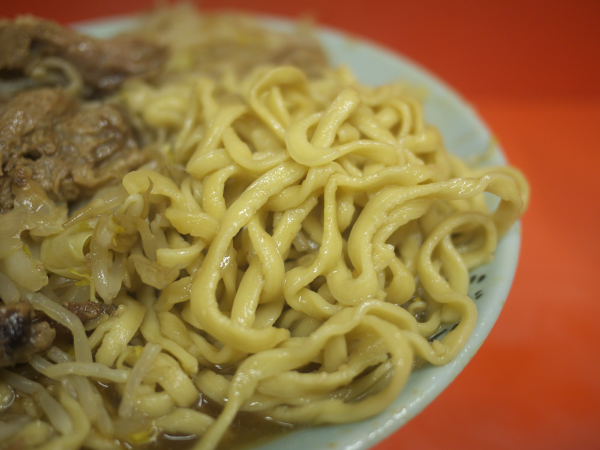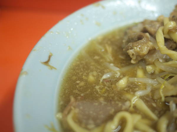 スープはいつもよりも、さらさらのタイプ。この日は、久々に野菜増しにしてみました。富士丸のモヤシは味付きなので、量が多くても食べやすい。それでもこれほどの量は途中で飽きそうになります。富士丸では、野菜でお腹いっぱいになるよりも、麺やブタをたくさん食べたいところです。野菜増しはもういいかなと思いました。