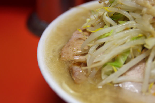 二郎インタビューのじくさんに予約してもらって、jin-nさんとつきじろうさんと逆シャ。二郎歴30年のジロリアンとはじめての二郎。30年前といえば、ジロリアンという言葉もまだありません。そんな昔から食べていて、今でも現役とは恐れ入ります。