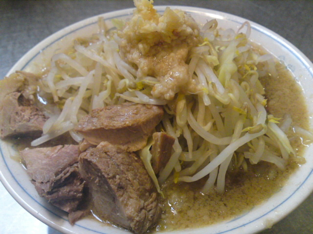 写真はニンニク・アブラの魚粉トッピング。魚粉は余計だったかもしれないが、ニンニク・アブラを基本にすれば、僕の好みにかなり近づくことが分かった。